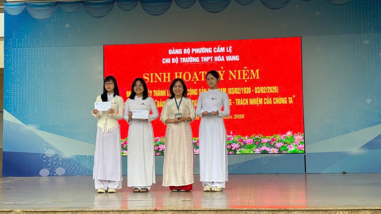 Trong không khí trước thềm xuân mới Bính Ngọ 2026, sáng ngày 2/2 thầy trò trường THPT Hoà Vang tổ chức tiết sinh hoạt dưới cờ “Kỉ niệm 96 năm ngày thành lập ĐCS Việt Nam (3/2/1930 – 3/2/2026) và tổ chức trao giải cuộc thi “Bảo vệ nền tảng tư tưởng của Đảng – Trách nhiệm của chúng ta”